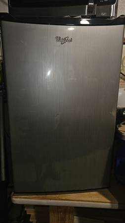 Whirlpool mini fridge. Great shape. Stainless finish. Call or text three 25 two 34 nine 270. If the ad is still up, its still available.