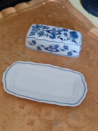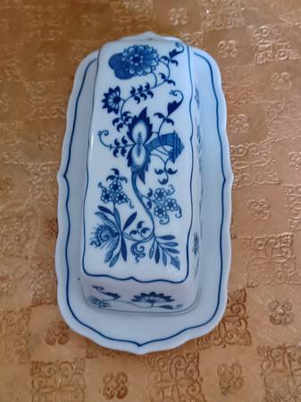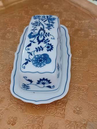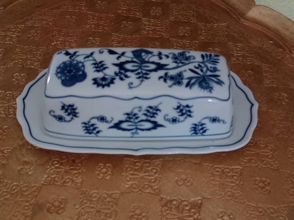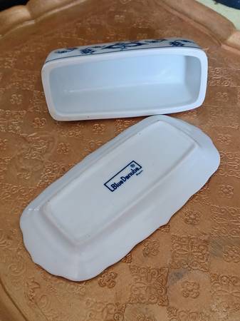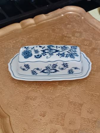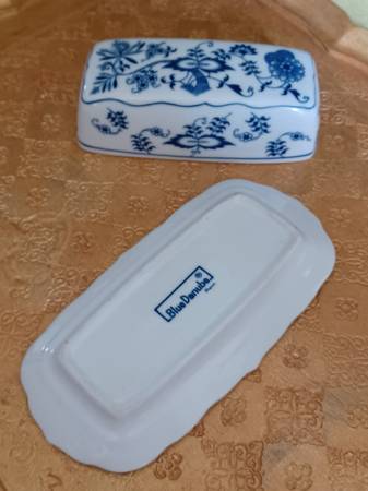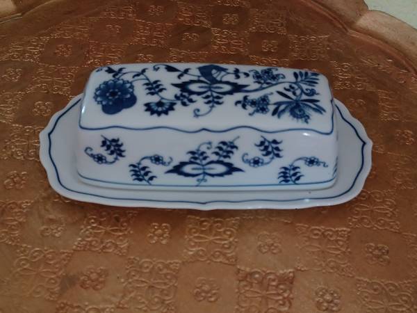 Mint BLUE DANUBE BlUE ONION covered butter dish. Japan.