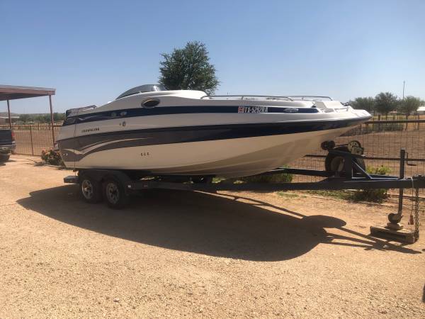 2002 Crownline 212 DB. Has rear swim deck. Bimini top. Approximately 270 hours on Volvo 5.7 V-8. Just had it completely gone through by certified boat mechanic February 2025. Carburetor cleaned, all fluids changed, etc. Have receipts. Title in hand. New $2k Lowrance fish finder / GPS. Road Runner trailer. Bathroom cabin with toilet. Two sinks. Removable pedestal table. 6 stainless steel rod / drink holders in place of factory plastic drink holders, cost $125 each. Garage kept and in excellent shape for its age. Running great, lake ready. No issues, my girls are wanting a boat more rigged up for fishing. Message for more videos. Asking $15,000 OBO.
