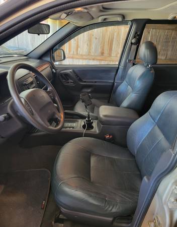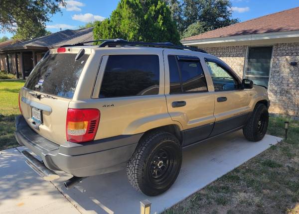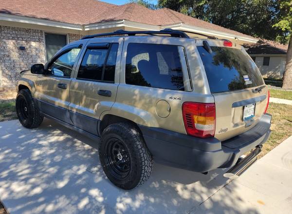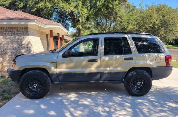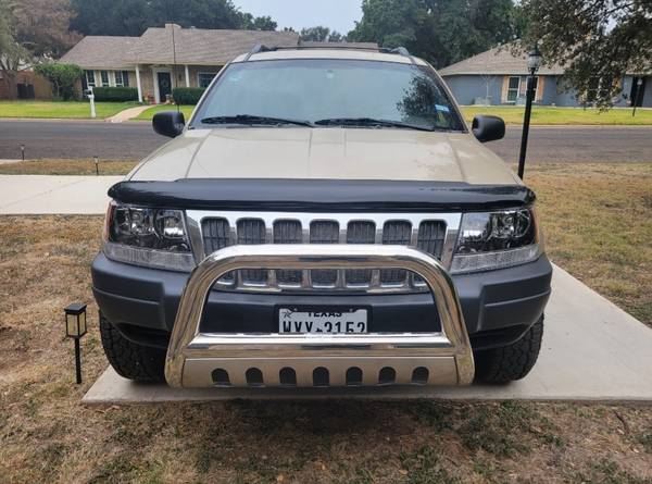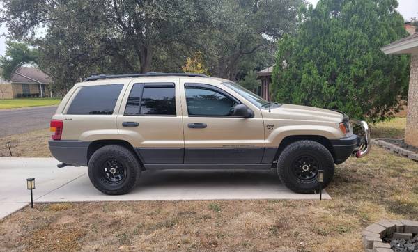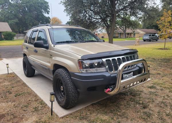 Detailed inside/out on this Highly rated Grand Cherokee "WJ" series w/only 138k original miles (mostly highway). Bulletproof straight 6cyl (4.0L engine). Runs great! No issues! Regular maintenance. Everything works including; 4x4, stereo, all power windows, door locks, sunroof, A/C, heat/rear defrost. New upgrades include: rims, tires, lug nuts, battery, belt, hoses, spark plugs, wipers, windshield, Custom head lamps, bug deflector, window visors, and front bull bar/rear safety bar/tow hitch. Also comes with 2-keys/fobs, 2" lift kit, extra new parts, and set of original rims/tires. Clean Texas title in my name, cell #77three-8two4-82eight2. Must see! Best reasonable offer drives it home! Thanks, Les