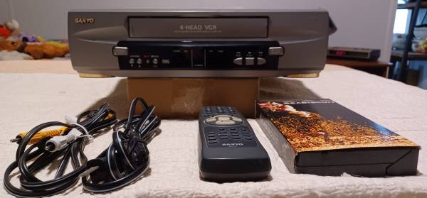 Sanyo model VWM 375 4 head VCR player with remote & Seabiscuit Movie. Cables included to hook unit up.