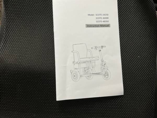 Foldable electric scooter. 8” solid front&Rear tires; folding size 400*500*850mm; will travel 25 miles on a single charge. Have instruction booklet.