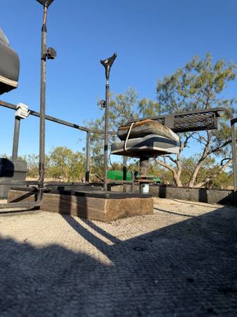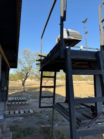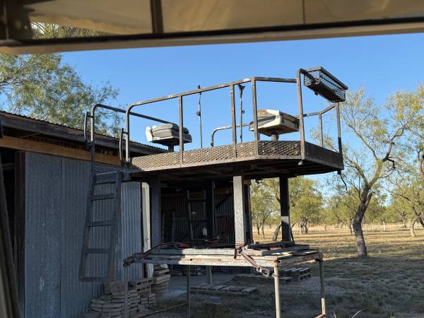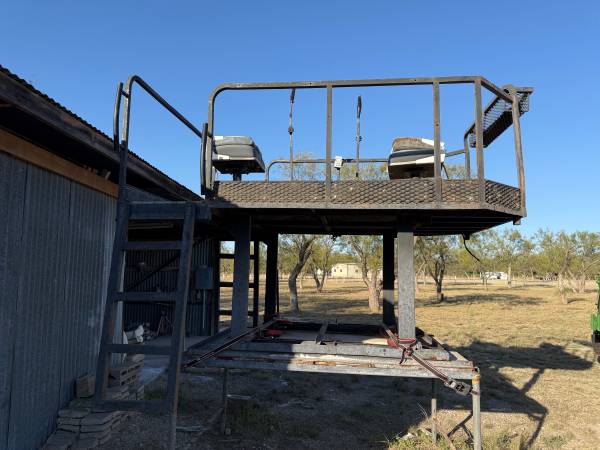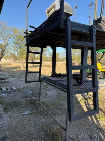 Just in time for Varmit hunting season. This rig comes with a stand for easy transport for loading on vehicle. A lever on the bottom side brings up wheels so you can back up and load with ease. Comes with two seats, high rise box for the spotter, electrical for plug in lights, ladder on both sides, tool box for storage and rack on the back for gun storage when going from one spot to the next. Made of solid metal with carpet on the bottom for sound and warmth purposes. Serious inquiries only. Thanks 3two5-3two0-586zero