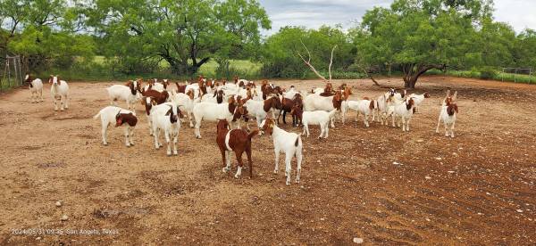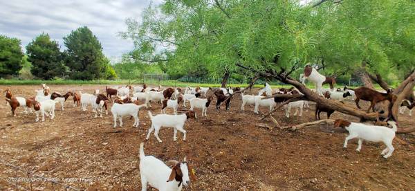My personal situation forces me to sell my herd of registered fullblood and purebred Boer goats. These are some of the top commercial meat goat genetics in the world. Turnkey operation including 4 herd sires (more available), 53 does exposed to start kidding March 12th (not guaranteed bred) of various ages, 2 guard dogs and website/domain (not going to lie it needs to be updated, but there is a ton of good content on it). All goats ABGA registered. Decades of performance test and other records.