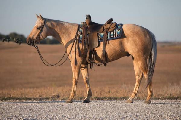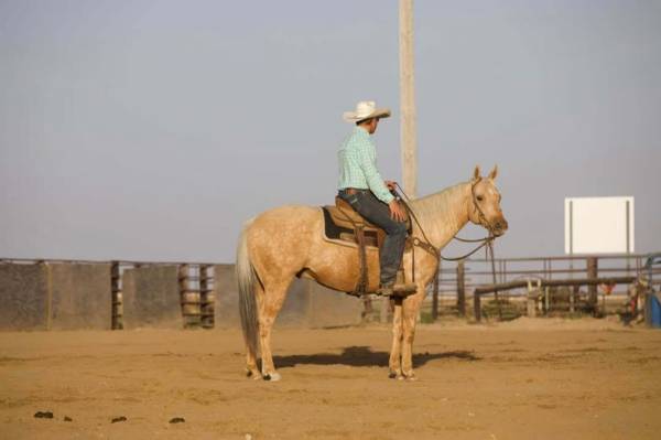 He is not a bronc at all, but after sitting he will saddle a little tight, so we always jog him around or let him move in a circle. After that he goes right to work. He’s young, talented, and ready for someone needing a strong using gelding.