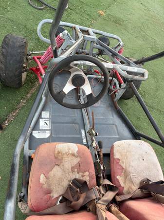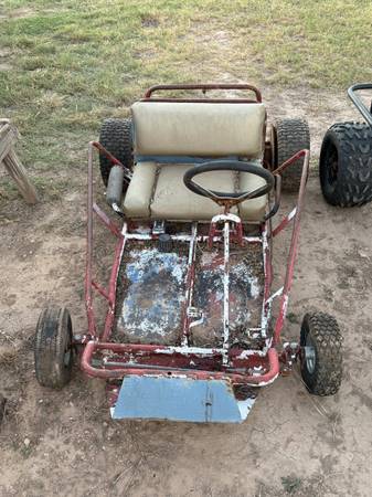 I have 2-Dune Buggy’s and 1-Complete but it will need fuel system cleaned,flat’s repaired and a battery for 500! Other 1- is missing top part of roll cage,steering wheel set up,back wheels and tires and will need some TLC for 250! I also have 2- Go Carts in Good Condition that need engines and I am pretty sure everything else is good and I will take 300 for black cart and 250 for Redish cart! I also have an EZGO golf cart that needs rear axle installed back in it and I have rear axle and components.(They were trying to put heavier springs in order to lift cart ).Cart is battery operated and was running fine when they pulled leaf springs etc!$1750 …..Please contact me by phone!I will sell everything listed in a bundle for $2500