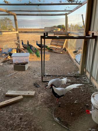 Located in Hermleigh. 3-4 yr old peacocks $125 each. Male and females. Indian blues. Also have 2 male silver pheasants for $75 each