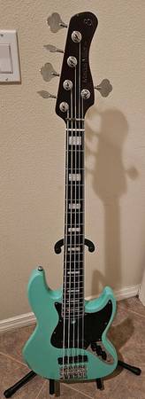 Near mint condition Sire V5R 5-string Jazz Bass Guitar in mild green finish. Alder body, rosewood fretboard and dark roasted maple neck. Sounds amazing. No dents, dings or scratches.