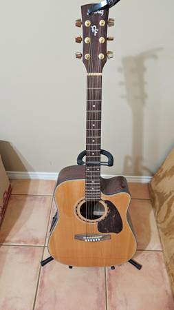 Used but well cared for Ibanez PF5EGE with On Stage Stands adjustable guitar stand. Excellent condition. Everything works. $150. Call or text 3 two 5 two 34 nine 270.