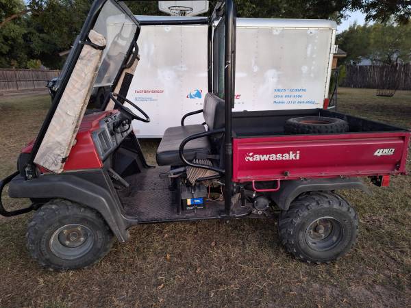 Kawasaki 3010 Mule 2005 yr model 4x4, 1513 hours, windshield, excellent seat, electrical bed lift with Rhino lining, excellent tires and spare $4,500 Text or call 325-234-six 33 three