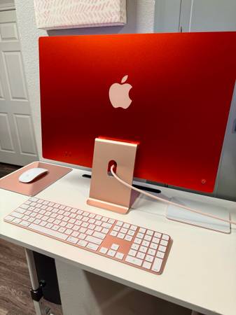 Selling my Apple iMac 24-inch Retina with the M1 chip (pink & red color). It’s in like-new condition, has been gently used, and comes with all original accessories: